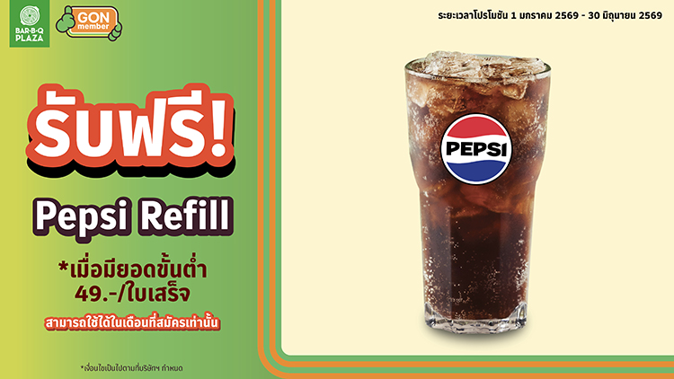 เพียงสมัครสมาชิก GON member วันนี้ รับฟรี Pepsi Refill มูลค่า 49.- จำนวน 1 แก้ว