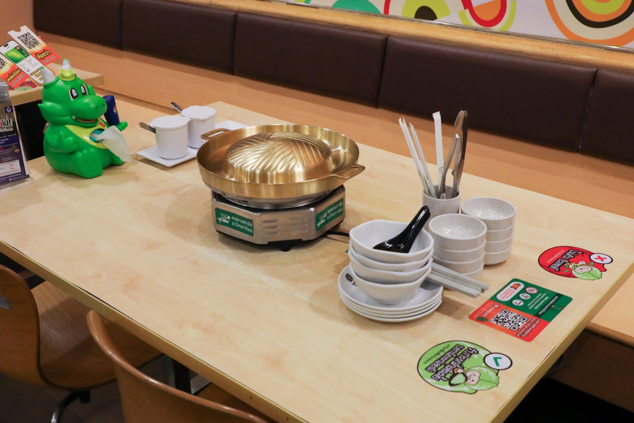 วางจานที่สติ๊กเกอร์ สีเขียว : เหนี่ยวกะหล่ำให้จุกๆ เติมไม่อั้นเหมือนเดิม